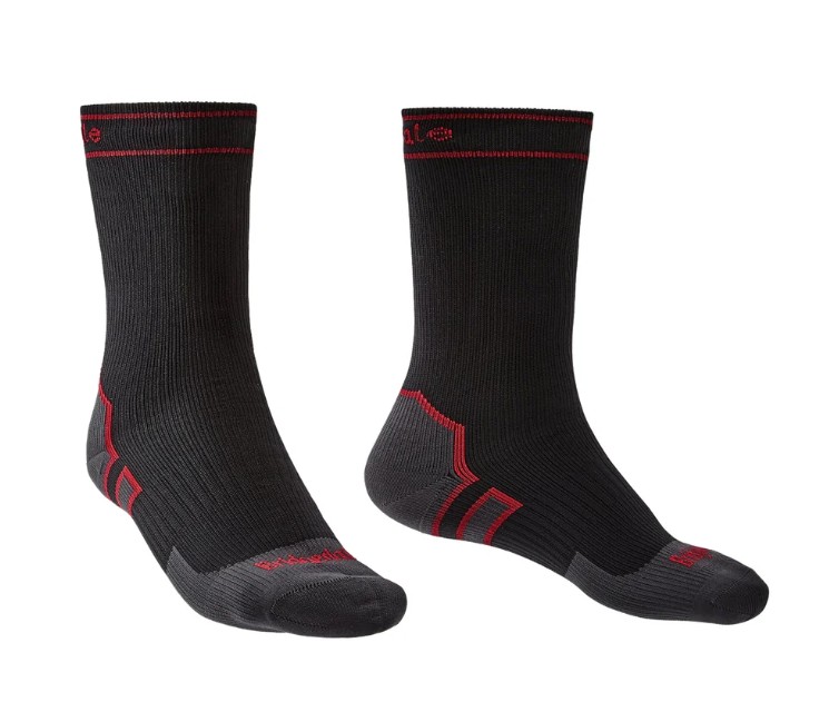 Comprising 3 layers the Heavyweight boot length StormSock features dense resilient terry cushioning throughout the sock for warmth and padding. Primarily knit from Merino Wool, known for its anti-bacterial, anti-odour and moisture management properties, the sock will keep your feet warm, dry and comfortable. The outer layer sock, made from nylon, protects the Hydrotech waterproof breathable membrane against abrasion from the boot. Lycra knit through every course gives the sock Bridgedale's performance fit and together with the flat toe seam and elastic arch support ensure the sock remains in place and doesn't cause any hotspots. The stretch PU membrane and clever matrix lamination process that bonds the three layers of Bridgedale's Stormsock together ensure they have class leading stretch built right in, wear after wear. Bridgedale's best-selling length, our boot length comfortably sits above the ankle cuff of standard walking boots. Covering the leg up to the mid-calf our boot length can be easily be protected from water ingress with waterproof trousers or gaiters.