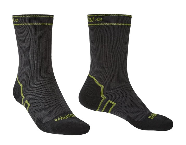 Comprising 3 layers the lightweight boot length StormSock features a thin un-cushioned lining that wicks moisture away from your feet. Primarily knit from Merino Wool, known for its anti-bacterial, anti-odour and moisture management properties, the sock will keep your feet warm, dry and comfortable. The outer layer sock, made from nylon, protects the Hydrotech waterproof breathable membrane against abrasion from the boot. Lycra knit through every course gives the sock Bridgedale's performance fit and together with the flat toe seam and elastic arch support ensure the sock remains in place and doesn't cause any hotspots. The stretch PU membrane and clever matrix lamination process that bonds the three layers of Bridgedale's Stormsock together ensure they have class leading stretch built right in, wear after wear. Bridgedale's best-selling length, our boot length comfortably sits above the ankle cuff of standard walking boots. Covering the leg up to the mid-calf our boot length can be easily be protected from water ingress with waterproof trousers or gaiters.
