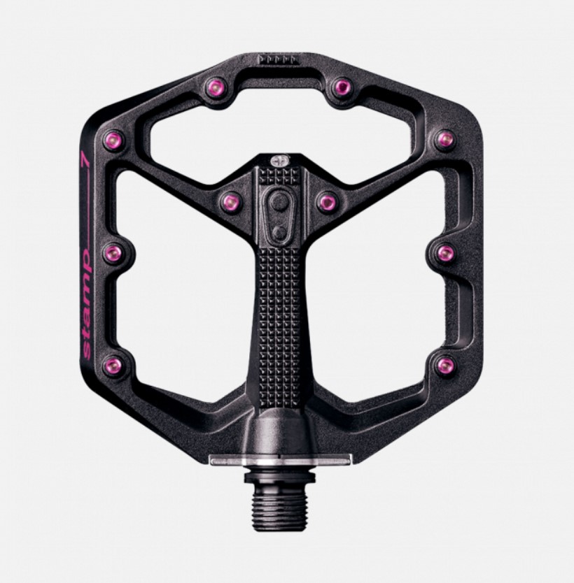 The new Crank Brothers Stamp Flat Pedal is engineered to provide the optimal interface between shoe and pedal. 20 adjustable pins per pedal.
