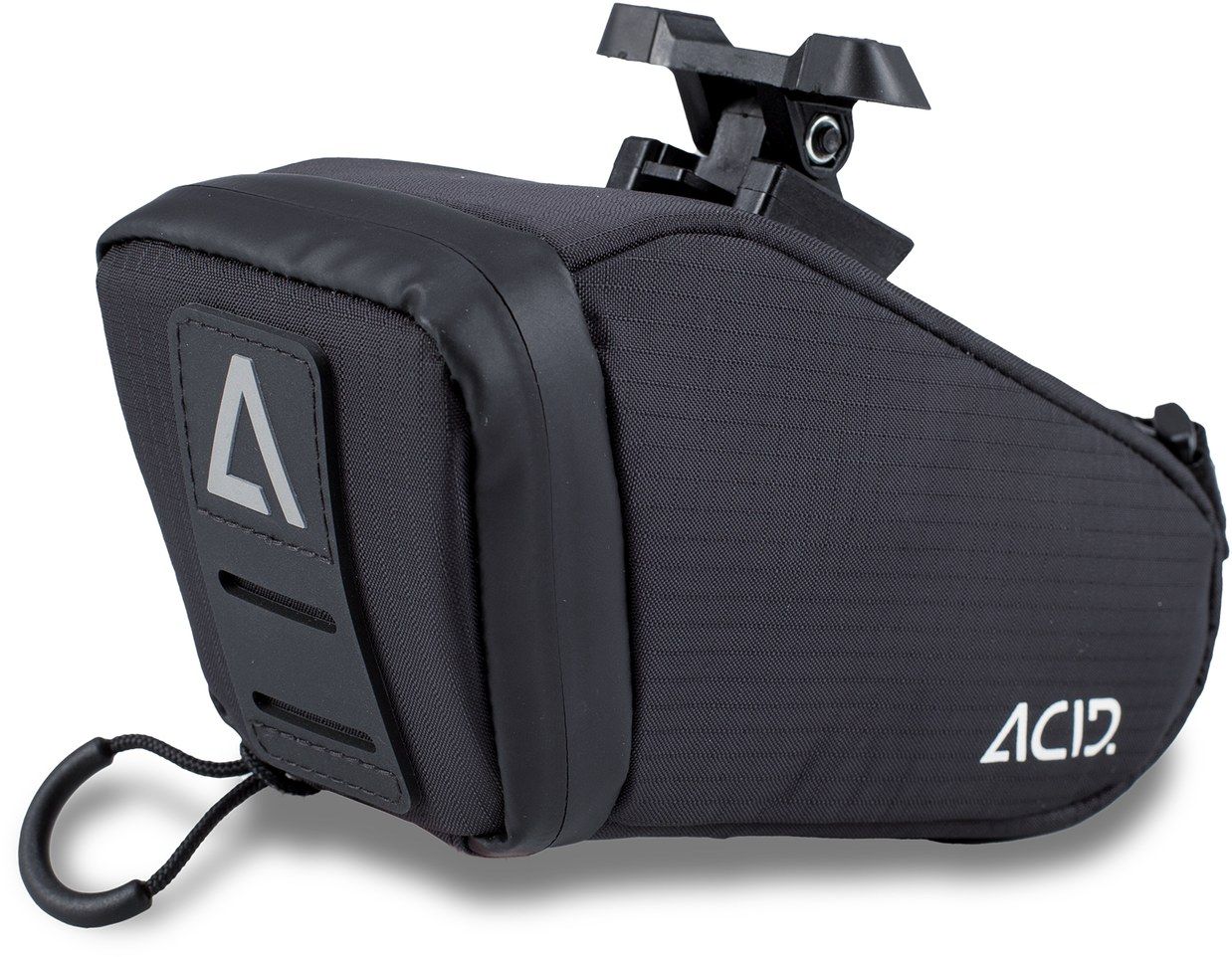 Attaches via CUBE saddle adapter (included), attaches via ACID X Natural Fit saddle adapter (included), slender form, interior pocket, water-resistant zip, rear light mount.
