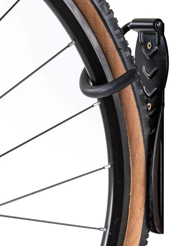 Hooking the Bikes front wheel into the ETC 1 Wall hook allows it to be stored off the floor and is designed to allow a lock to be fitted for added security.
