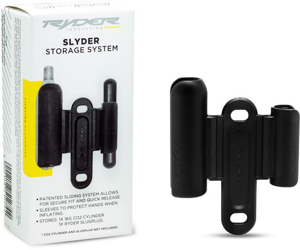 The SLYDER Storage system keeps your CO2 inflation to hand where ever your bike goes, securely and conveniently storing your 25g CO2 cartridges and SLUG PLUG under your bottle cage