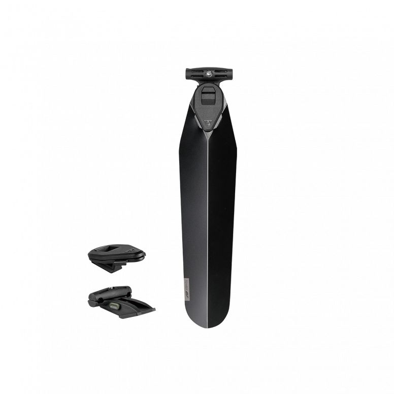 Durable polypropylene fender is ultralight, stylish, and simple to slide and click then ready to go when wet weather arrives. Included Duo Fixer allows fast and easy tool-free mounting and removal and provides dual use with Topeak Duo Fixer system accessories, including Topeak QuickClick saddle bags or most strap type saddle bags, Tubi tools, CO2 inflators, and lights underneath the saddle.